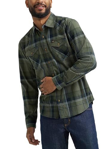 0% off Wrangler Men's Iconic Denim Regular Fit Snap Shirt, Thyme Plaid, X-Large 0% off