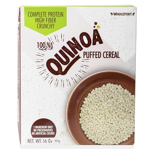 0% off Puffed Quinoa Cereal + Nothing – Vegan – Gluten Free – Non-GMO – [1 LB] Try Quinoa Pops as Snacks – Cereal – Salad Topper for Sustainable Energy – Crunchy Quinoa is Good Mood Food – by Wholefort 0% off
