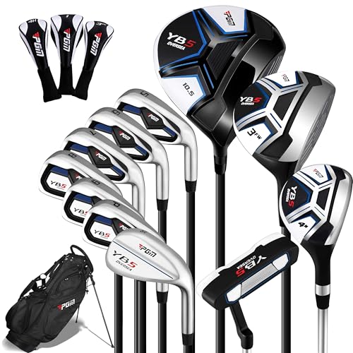 0% off PGM Men's Complete Golf Club Sets - 11 Pieces - 2 Wood (#1,3), 1 Hybrid (#4H), 7 Irons(#5,6,7,8,9,PW,SW), 1 Putter - Golf Stand Bag - Right Handed - Ideal for Beginners 0% off