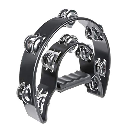 0% off Half Moon Musical Tambourine Double Row Metal Jingles Hand Held Percussion Drum Multicolor for KTV Party with Ergonomic Handle Grip (Black) 0% off