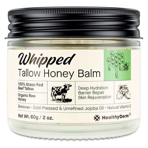 30% off Beef Tallow Honey Balm for Skin: 100% Grass Fed Whipped Organic Moisturizer with Organic Raw Honey, Jojoba Oil, Vitamin E – Natural Face and Body Care for Mature, Dry or Sensitive Skin, 2oz 30% off