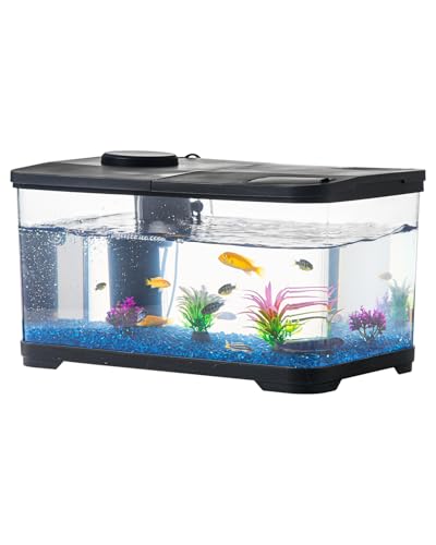 0% off yumentor Fish Tank, 3.8 Gallon Aquarium Starter Kit with Self Cleaning Fish Tank Pump with Filteration, Oxygenation, Water Circulation, Lighting Betta Fish Aquarium with Decor, Gravel (Black) 0% off