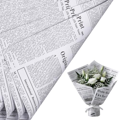 Vintage Design: Featuring a unique black font newspaper print design on white kraft paper, this wrapping paper adds a vintage and sophisticated touch to any bouquet, making your floral arrangements stand out