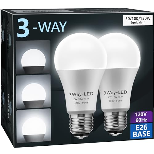 3 WAY LIGHT BULBS 50 100 150W: 5000K daylight white 3 way light bulb uses 7/10/15W to yield equivalent illumination of 50/100/150W incandescent and halogen bulbs. 3 lighting levels: high-medium-low (500lm-1000lm-1500lm)