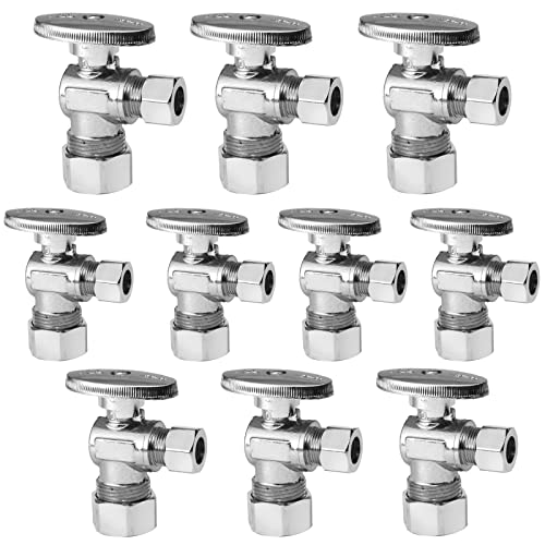 0% off GUOFIS 10 Pack Angle Stop Valve,1/4 Turn Water Shut Off Valves,1/2" Nominal (5/8" OD) Compression Inlet x 3/8" OD Compression Outlet Shut-off Valve Plumbing(VALVE116-10Pack) 0% off