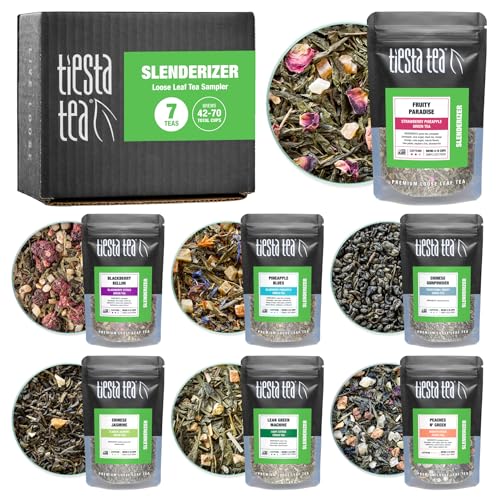 DISCOVER A WORLD OF FLAVORS: This set features a delightful array of loose leaf teas, including Fruity Paradise, Blackberry Bellini, Pineapple Blues, Peaches N Green, Chinese Jasmine, Chinese Gunpowder, Lean Green Machine. The samples provided may vary in